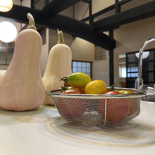 玄米を白米に精米し、野菜は畑で収穫して、卵は庭先で飼育しているニワトリから。ゆったりと流れる時間の中で、夕食づくり朝食づくりが少し楽しいと感じてもらえるかもしれません。是非ご一緒にお食事の準備を楽しみましょう。